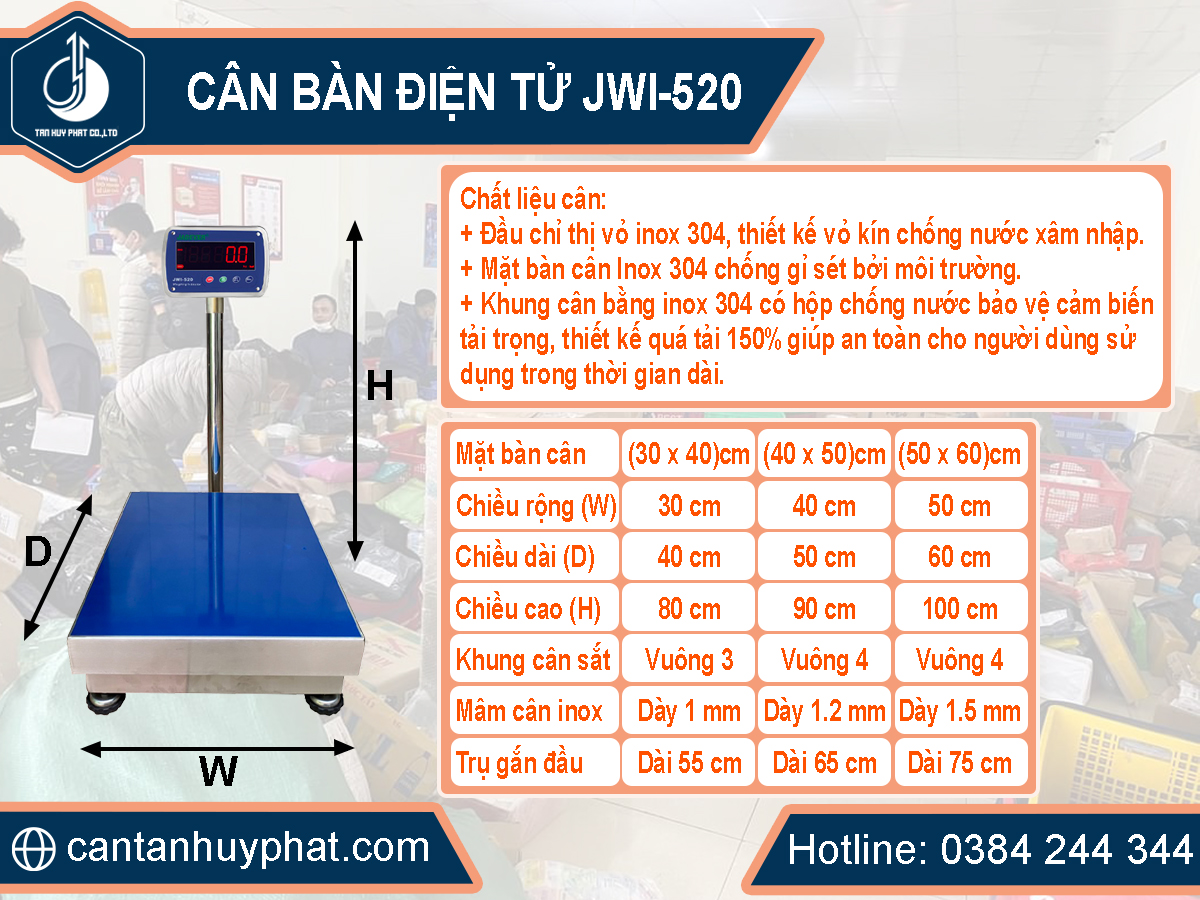 IV. Phân loại cân điện tử JWI-520 theo kích thước: