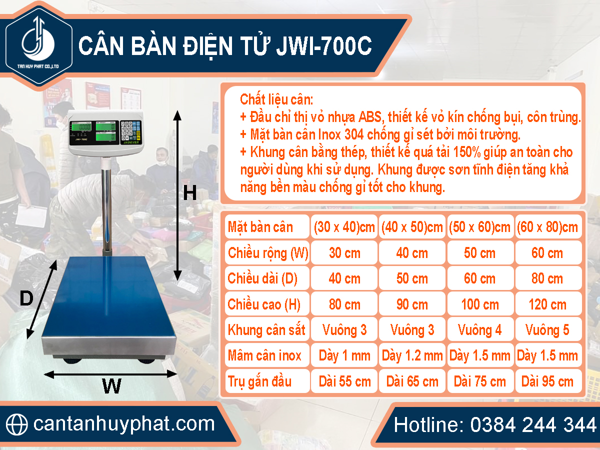 IV. Phân loại cân điện tử JWI-700C theo kích thước:
