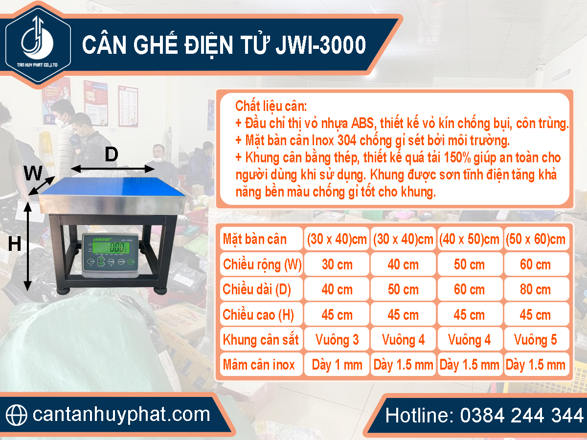 IV. Phân loại cân điện tử JWI-3000 theo kích thước: