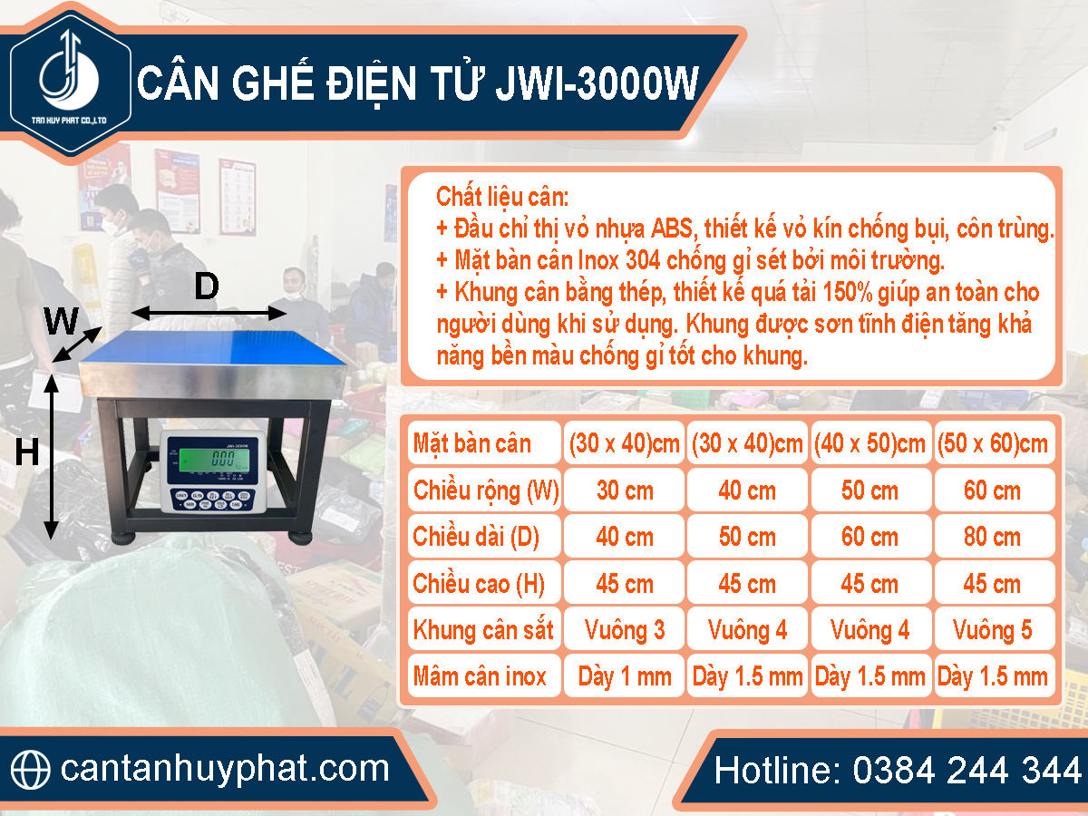 IV. Phân loại cân điện tử JWI-3000W theo kích thước: