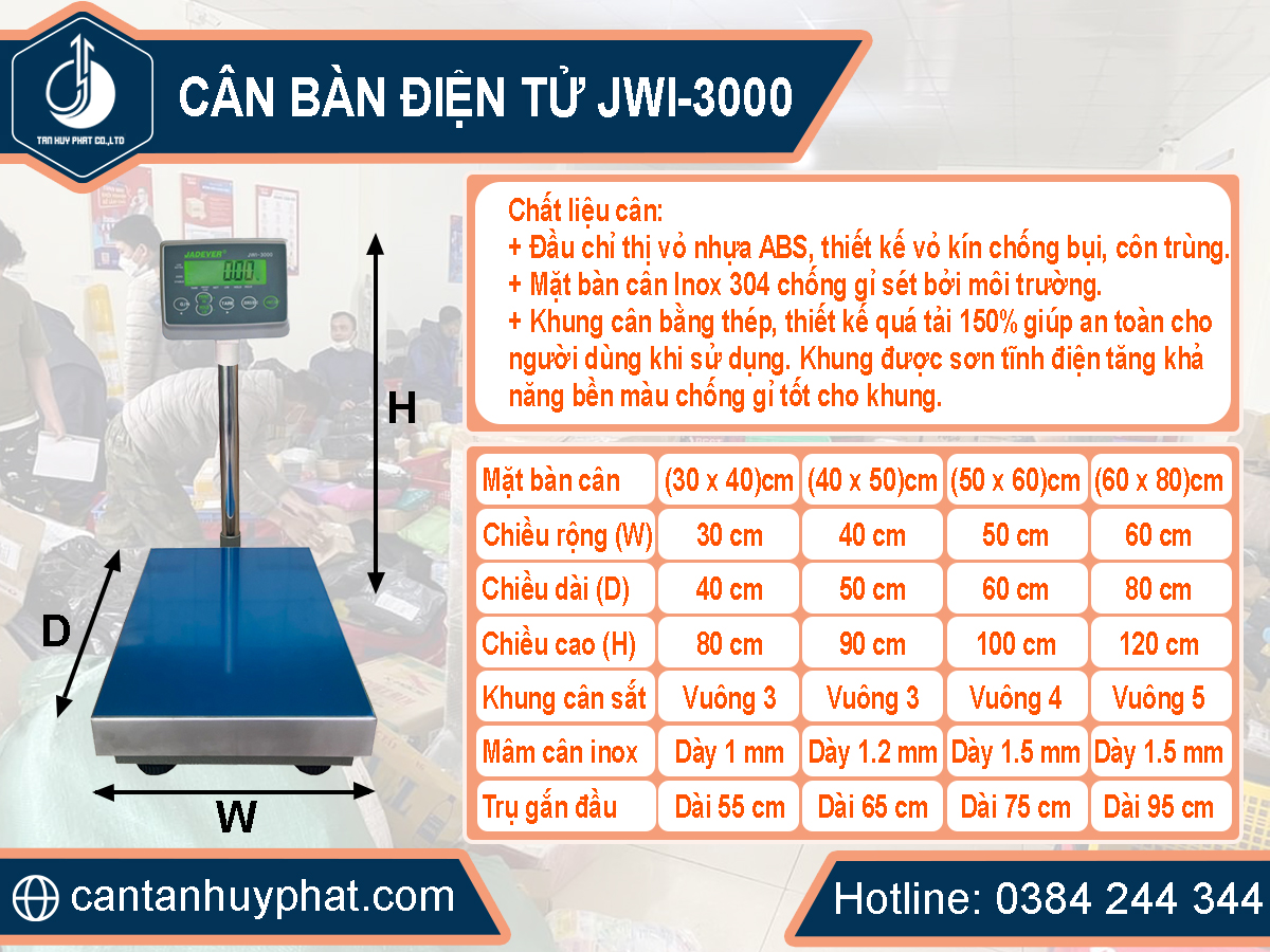 IV. Phân loại cân điện tử JWI-3000 theo kích thước: