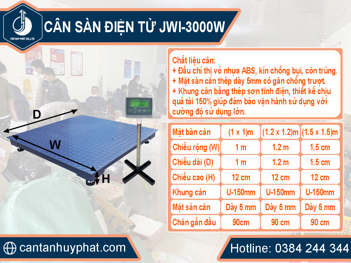 | Kích thước mặt sàn cân | 1.5m x 1.5m (rộng x dài); |
