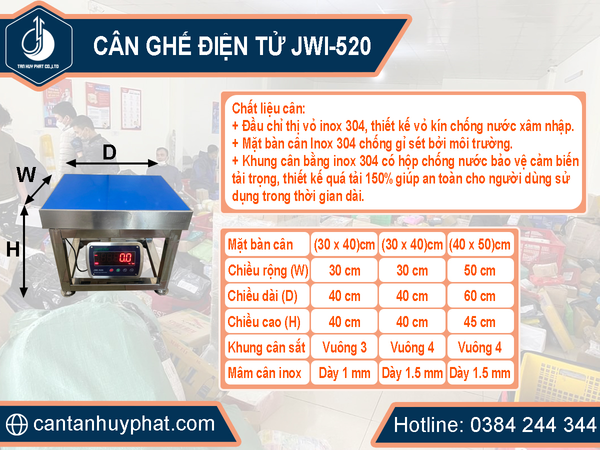 IV. Phân loại cân điện tử JWI-520 theo kích thước: