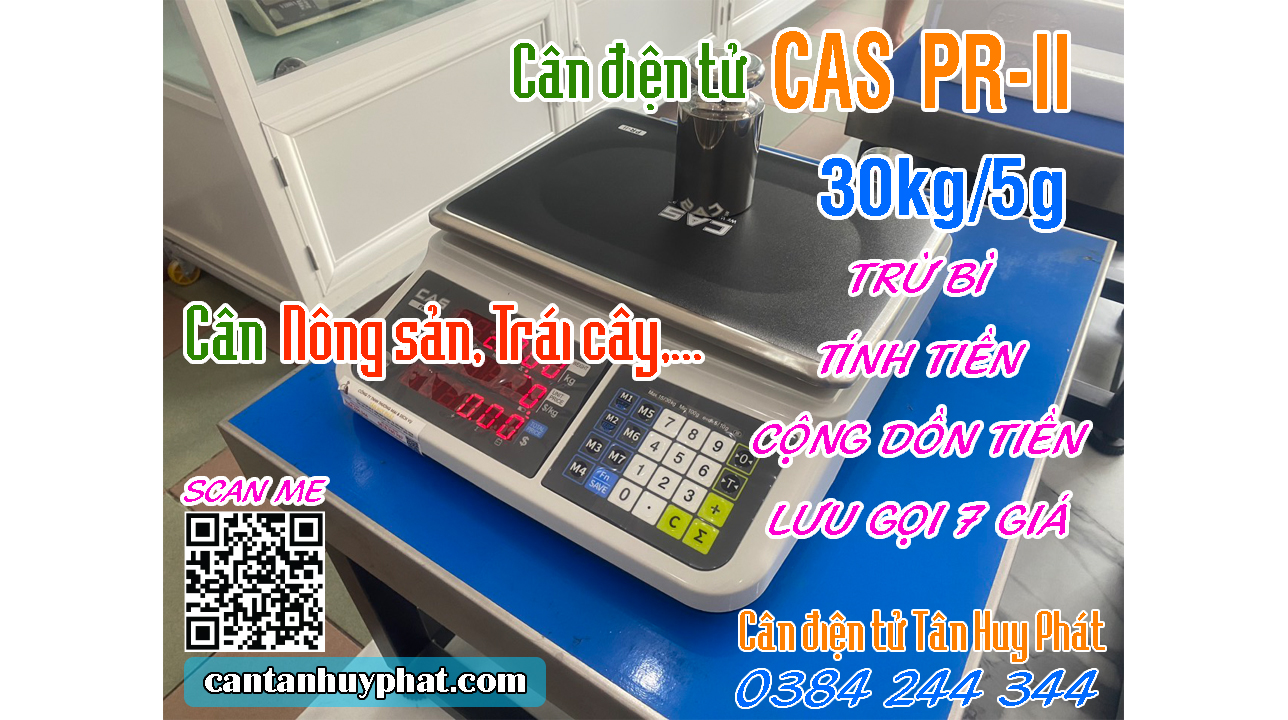 CÂN ĐIỆN TỬ TÍNH TIỀN CAS PR-II 30KG, LƯU GỌI NHANH 7 GIÁ BÁN