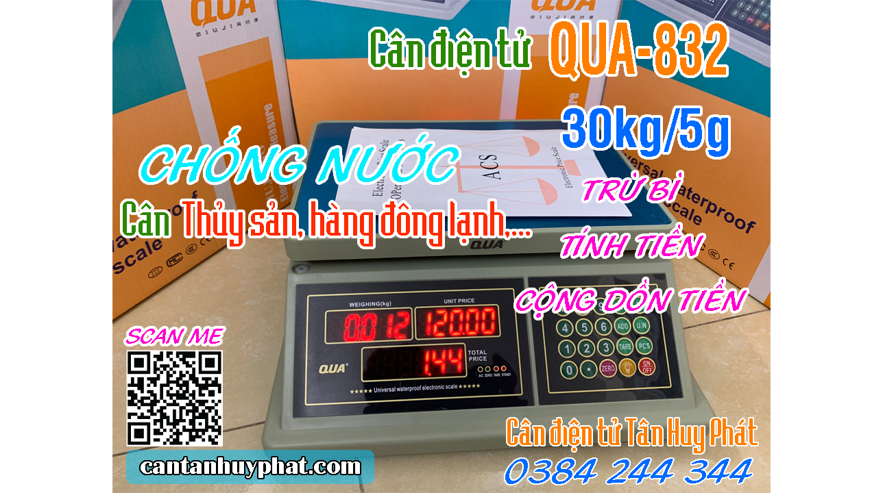 CÂN ĐIỆN TỬ TÍNH TIỀN QUA-832 30KG THIẾT KẾ CHỐNG NƯỚC